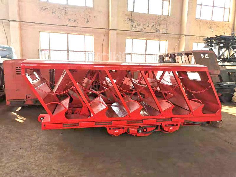 该车由绞车或卷扬机牵引,可独立使用首车运行,也可与一定数量的挂车组列运行,所挂车辆的多少取决于所运行矿井的倾斜角度,该车内设有自行制动和人工操作两种制动方式,如发生断绳或意外可自行或人工操作进行制动。