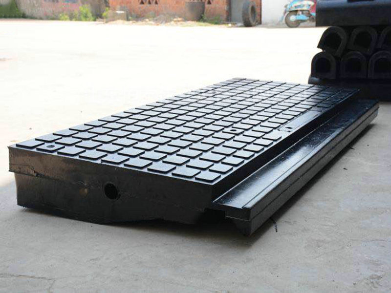 1.橡胶道口板的外形尺寸设计,充分的考虑了铁路的几何尺寸进行设计的,长度尺寸与枕木间距是匹配的,使一块道口板正好跨越两个(或三个)枕木空, 搁置在三根(或四根)枕木上,并且采用螺纹道钉与枕木可靠连接,使道口板与枕木形成传力结构,汽车轮子的冲击力被分散到几根枕木上,枕木受力较小, 且相对均匀,有效地减少了线路吊板病害,保持了橡胶道口铺面的整体平整。