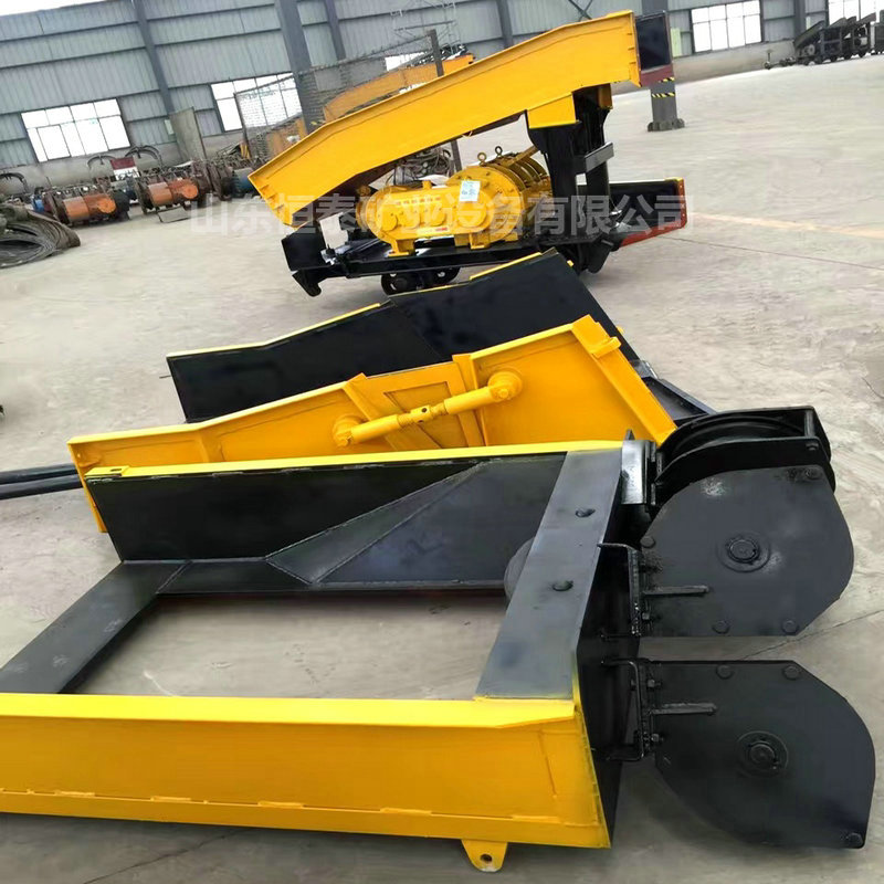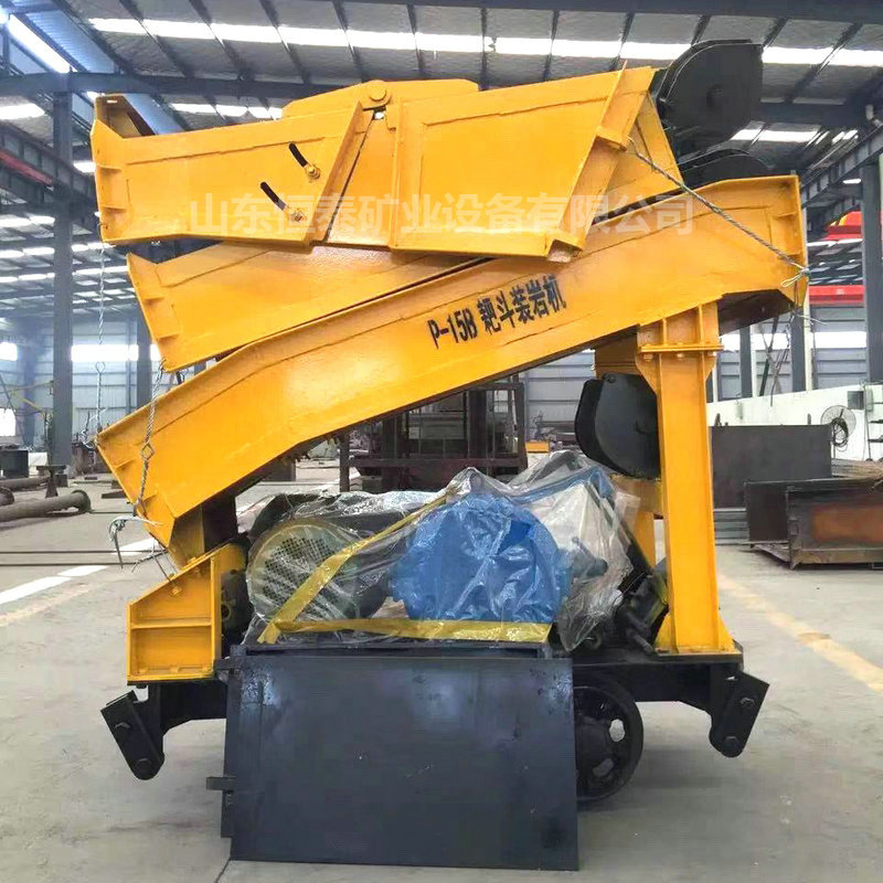 耙斗机是通过绞车的两个滚筒分别牵引主绳,尾绳使耙斗做往复运动把岩石扒进料槽,至卸料槽的卸料口卸入矿车或箕斗内,从而实现装岩作业。