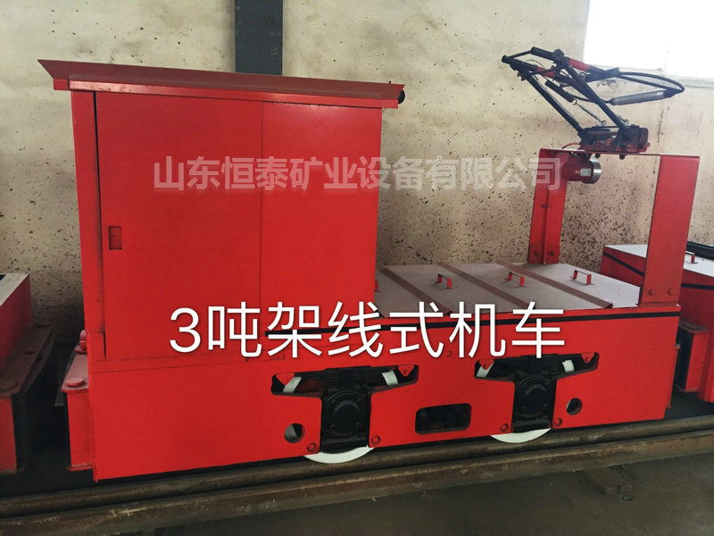 运行稳定、灵活,操作简便,维护检修容易。采用涨闸制动,制动效果好。3T电机车分为无级调速与有级调速两种,采用机械制动,电压为250V。架线式电机车是轨道车辆运输的一种牵引设备,动力是利用牵引电机驱动车轮转动,借助车轮与轨面间的摩擦力,使机车在轨道上运行。这种运行方式,它的牵引力不仅受牵引电机(或内燃机)功率的限制,还受车轮与轨面间的摩擦制约。机车运输能行驶的坡度有限制,运输轨道坡度一般为3‰,局部坡度不能超过30‰。其按结构分类有架线式电机车和蓄电池电机车。